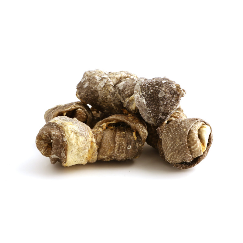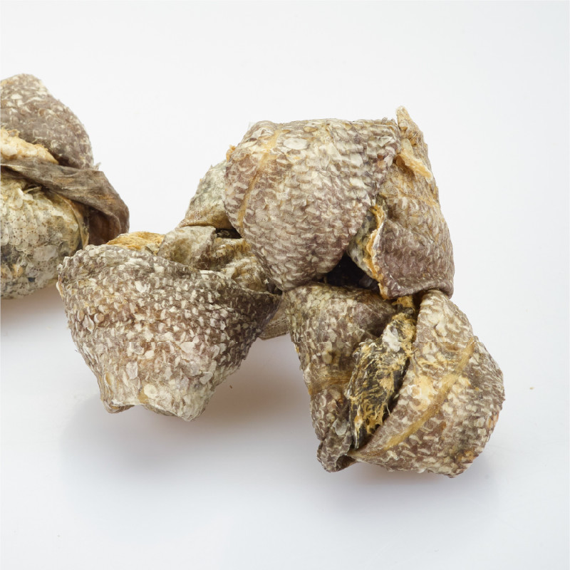 素材 【原材料】 ホワイトフィッシュ皮:100%【保証成分値】 粗たんぱく質:76%以上、粗脂肪:0.4%以上、粗繊維:2.35%以下、粗灰分:11.13%以下、水分:11%以下、オメガ3脂肪酸:0.3%、オメガ6脂肪酸:0.1% 【代謝エネルギー】 11.3kcal/10g